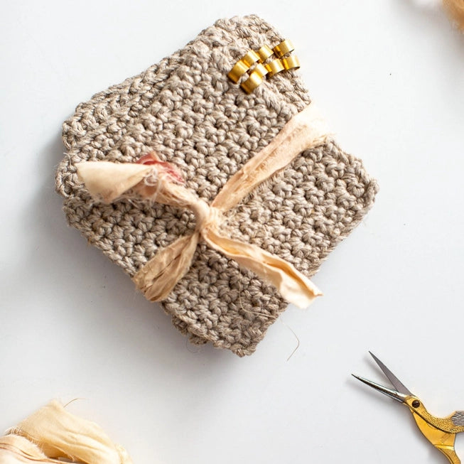 Simple but stunning, these all-natural linen coasters are just the thing. Add texture and charm to your table with these beauties. We love the little brass detail for just the right finishing touch. One kit makes 5 coasters. This is the perfect holiday, hostess, or teacher's gift. The nicest way to give a handmade thank you.